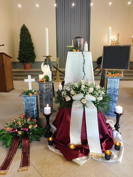 Der Zeitpunkt für die Trauerfeier kann ganz individuell gewählt werden. Zum Teil findet sie getrennt von der Bestattung oder Beisetzung statt. Der Tote kann zu Hause oder in einem eigens dafür vorgesehenen Raum aufgebahrt werden und die Hinterbliebenen haben die Möglichkeit sich entweder am offenen oder geschlossenen Sarg zu verabschieden. Die Trauerfeier kann aber auch als Teil der Beisetzung betrachtet werden. Dann verabschiedet man sich vorher in einer Zeremonie vom Toten und begleitet die Angehörigen anschließend zur Beerdigung auf den Friedhof. Trauerfeiern sind heutzutage eine sehr individuelle Sache, die jede Familie so gestalten kann, wie sie es für richtig hält – einen richtigen oder falschen Zeitpunkt oder Ablauf dafür gibt es nicht.